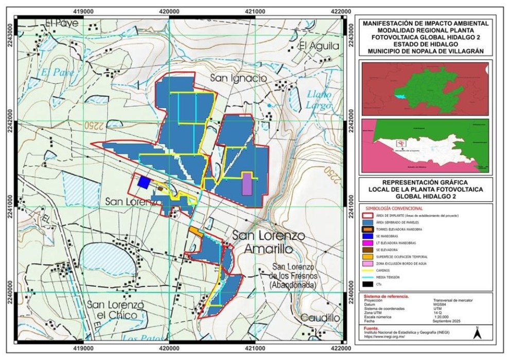 Dos proyectos solares con una capacidad conjunta de casi 250 MWp fueron presentados ante la Secretaría de Medio Ambiente y Recursos Naturales (Semarnat) para evaluación ambiental en el municipio de Nopala de Villagrán, estado de Hidalgo.