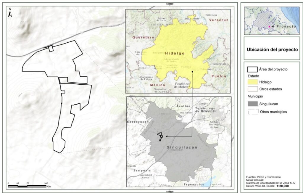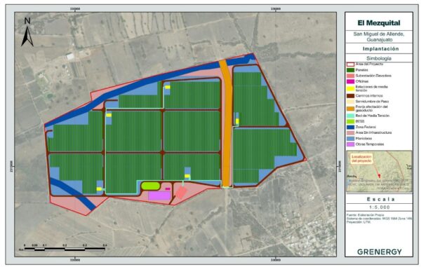 Según la información aportada al Semarnat, el proyecto contempla infraestructura eléctrica, sistema de almacenamiento y una línea de transmisión de 230 kV dentro de un área de 192,2264 hectáreas.