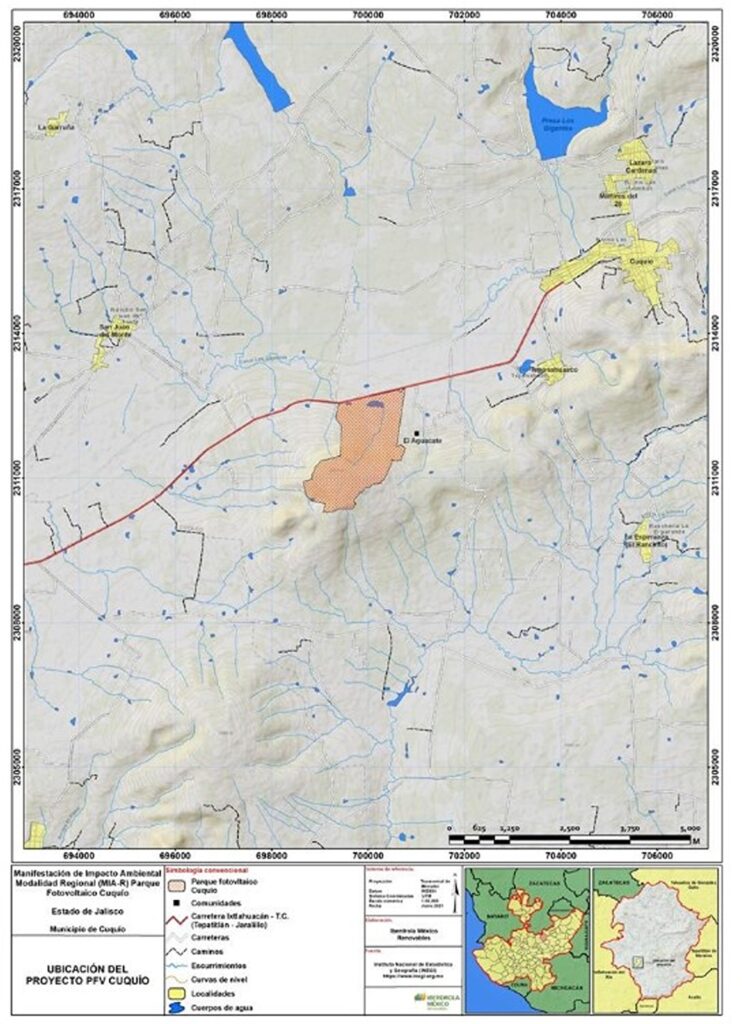 La Secretaría de Medio Ambiente y Recursos Naturales (Semarnat) otorgó la autorización en materia de impacto ambiental al proyecto Parque Fotovoltaico Cuquío, una central solar de 100 MW que se desarrollará en el municipio de Cuquío, en el estado de Jalisco. La iniciativa fue evaluada por la Dirección General de Impacto y Riesgo Ambiental (DGIRA), que avaló el desarrollo del proyecto en sus etapas de preparación del sitio, construcción, operación, mantenimiento y abandono.